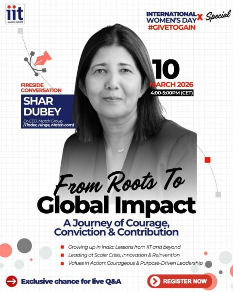 Fireside Q&A with Shar Dubey (Online, Open to all). This PanIIT Europe International Women’s Day, join us for an inspiring global conversation celebrating leadership, courage, and action.